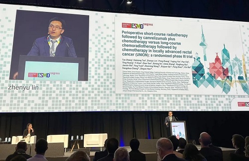 10月21日,AG真人平台医药创新药卡瑞利珠单抗(艾瑞卡®)的一项研究“新辅助短程放疗序贯卡瑞利珠单抗联合化疗对比长程放化疗序贯化疗治疗局部晚期直肠癌”随机对照Ⅲ期试验(UNION) 以优选口头报告的形式正式亮相。该研究由华中科技大学同济医学院附属协和医院张涛教授、陶凯雄教授担任主要研究者,华中科技大学同济医学院附属协和医院林振宇教授在马德里现场报告了该重磅研究的结果1,此项研究是全球首个评估短程放疗序贯免疫治疗联合化疗治疗局部晚期直肠癌的Ⅲ期研究,已达到主要终点病理完全缓解(pCR),有望为直肠癌患者的治疗提供新策略。